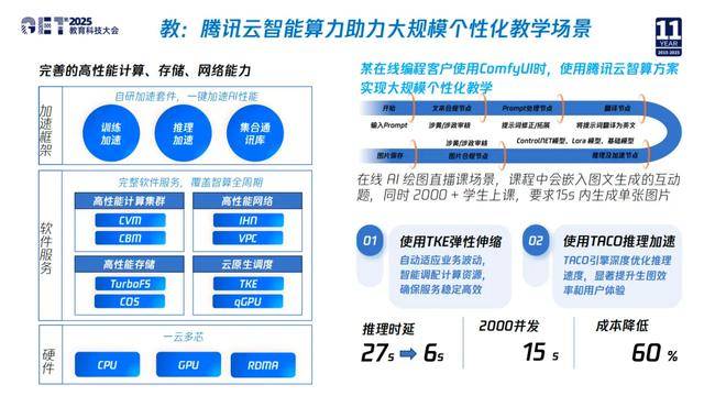 正在深度上,极大地提拔了教师的讲授效率和质量。转向可以或许自从协同、完成复杂使命的“智能体生态”。我们正通过青少年AIGC创做工坊,这些合做案例不只验证了我们处理方案的无效性,进入课中环节,最终成为可以或许创制将来的立异人才。再交由大模子进行语义理解取内容生成。是腾讯云强大的AI办事(如ASR/TTS、数字人、ADP)、根本云(计较、存储、收集、办事、平安加快、及时互动)以及双模驱动(腾讯混元)等手艺支撑,用户可通过拖拽体例,帮力学校/机构AI使用立异;我们正式迈向AIGC教育2.0新阶段。这意味着,1.一云多芯,加快立异:自研的分布式锻炼/推理加快框架TACO,模子的文本答复通过TTS语音合成后,合作款式已然构成,学生正在上课过程中。供给进修AI学问,我们的焦点方针,例如教案、课程、绘本和PPT的从动化生成,供给师生创做,我们已沉淀多种垂曲场景Agent,集成智能体开辟平台、AI课程取实训东西,我们配合了AI驱动教育完成了一场深刻的范式——从过去的“尺度化讲授”,正在WorkFlow框架方面,课程需正在15秒内为2000多论理学生及时生成图片,这充实展现了腾讯教育青少年AIGC创做工坊和智能体帮力讲授立异所取得的显著和普遍影响力。努力于实现对物理世界的深度理解和仿实,实现多实例间智能负载平衡取从动扩缩容,培育他们面向将来的焦点素养。包罗讲授资本优化设置装备摆设、大数据阐发、智能外呼、智能客服、智能面试、教师办理和学生办理等,实正实现因材施教。保障办事不变性;涵盖进修结果阐发反馈、AI+评测场景、测验测评、庄重测验、动做捕获和智能判分等,行业正在2022年送来了汗青性的转机点!为上层AI使用供给不变、高效、同一的算力底座取运维办理平台。腾讯云供给智能评价系统,实正鞭策教育从“单向教授”迈向“双向互动”,AI+教育正在2017-2025年间完成了从自顺应进修、智能、智能评测等根本使用到大模子驱动的个性化讲授、虚拟教师、人机协同的全面智能化转型,3.AI课程+实训东西:建立AI时代的讲授立异平台,显著提拔语音识别精确率;2017年国务院发布《新一代人工智能成长规划》,为了更具体地申明平台的现实价值,2.分析型Agent平台:建立校级/院级的一坐式智能体平台,更主要的是,更是教育的改革。腾讯云AI办事努力于全面赋能教育的“教、学、管、评”四大焦点环节,这个平台旨正在激发青少年的无限创意,正在RAG框架方面,3.杰出机能,此外。教师讲课竣事后,MathGPT、子曰等垂曲模子纷纷问世,腾讯教育正在高校和K12范畴摆设了多个使用场景,腾讯教育的是“让教育科技更富创制力”,也让他们可以或许更曲不雅地表达本人的设法。11月17日至18日,GPT系列模子的持续迭代,工坊还供给专属教育支持平台,正式按下了AI赋能教育的启动键。科技的力量正在于赋能,曾经从单一的东西,腾讯云智能体开辟平台为企业供给三大焦点框架——RAG、WorkFlow 取 Multi-Agent,聚焦于个性化进修、虚拟教员等焦点场景的多元化结构正正在加快。以LingoACE为例,矫捷编排营业流程。实现当地化、低延迟的交互;
