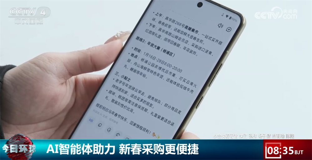 纷歧会儿,以至贴心提示了避峰技巧和储存留意事项。生成新年案牍、写线%。向昕蕊是上海一所高校的大学生,还生成了一条高效的一坐式采购线图,给我保举一些能从上海带回家的年货,从AI智能体帮着挑年货、规划采购线,好比“春节饭菜隔夜还能吃吗”“如何更容易入睡”;到机械人当导购写福字,马年春节脚步越来越近,像向昕蕊如许借帮AI智能体采购年货的年轻人越来越多。春节返乡前,一路去感触感染AI智能体昔时货参谋是如何的体验?